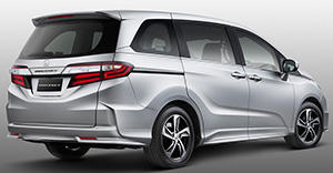 The Honda Odyssey J is the Japanese version of the model, which is being sold side by side with the U.S.-built Odyssey. This one was introduced to offer the minivan as a more affordable option. This one gets the 2.4-litre 4-cylinder engine, mated to a CVT. Two trims are available - the EX and EX-V. The EX offers three rows of seats for 8 people, while the EX-V provides seating for 7 people, as it has 2 separate middle-row seats for easy access to the third row. Base EX grade gets fabric seats, halogen lamps, touch-screen infotainment system, cruise control, 6 speakers, auto AC and 16-inch rims. The higher EX-V model gets LED headlamps, daytime running lamps, leather seats, independent front and rear A/C, engine start/stop button, sunroof, bodykit and 17-inch rims. Safety features include 6 airbags, Vehicle Stability Assist (VSA), Anti-Lock Brake Systems (ABS), Electronic Brake Distributor (EBD) and Hill Start Assist (HSA). The EX-V gets additional blind spot indicators on the side...