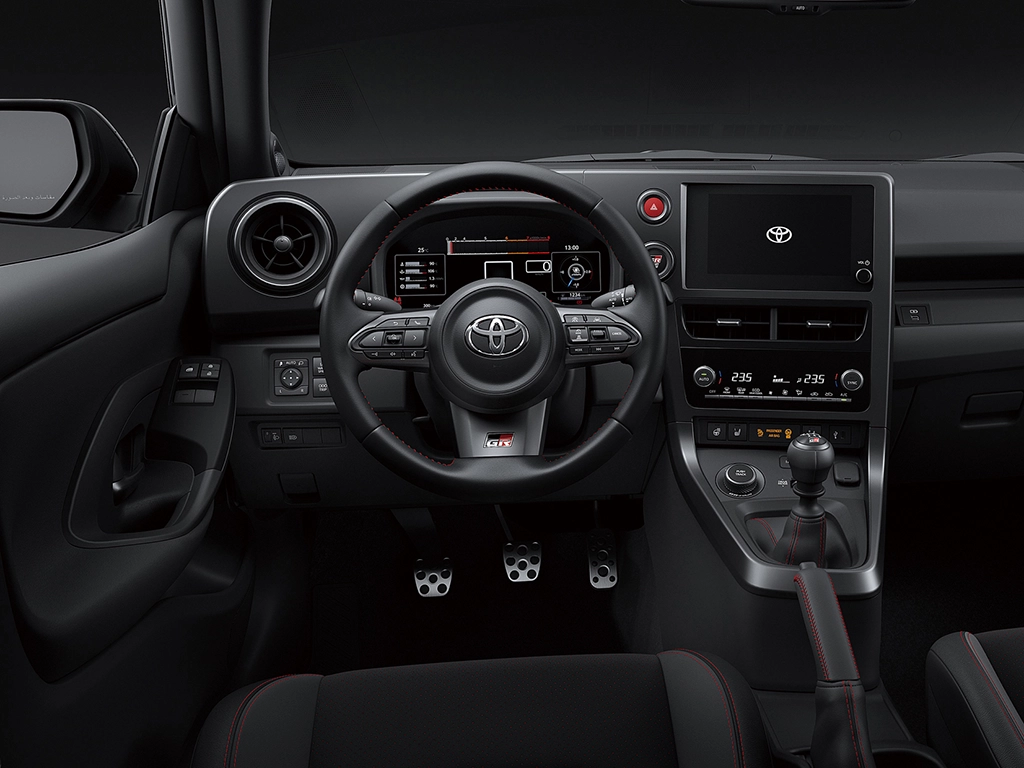Power comes from a 1.6-litre turbocharged three-cylinder petrol engine (G16E-GTS), one of the most powerful production units of its kind. In its latest specification, the engine produces up to 280 hp and 400 Nm of torque, delivering strong acceleration and an engaging, high-revving character. Buyers can choose between a 6-speed intelligent manual transmission (iMT) or a newly developed 8-speed GAZOO Racing Direct Automatic Transmission.