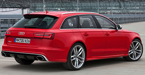 The Audi RS 6 is the top performance variant of the A6, the German brand's midsize offering. It is only available as a 5-door station wagon. In 2015, it got a minor facelift. Under the hood is a turbocharged 4.0-litre V8, mated to an 8-speed automatic transmission. It is available only in all-wheel drive format, as with all RS models. Standard options include 4-zone automatic air-conditioning, reverse-camera, MMI touch-sensitive navigation system, 10-speaker audio system, interior leather packages for the seats and door trim, sports suspension, air suspension, front and reverse camera, park assist, side assist, night-vision, lane-assist and BOSE surround sound. Safety standards are high as expected with front and side airbags all around, along with traction control and stability control.