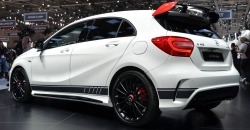 The Mercedes-Benz A 45 AMG is the range-topping variant of the A-Class line. If features a 2.0-litre turbocharged 4-cylinder engine mated to a 7-speed automatic and an all-wheel-drive platform. Externally, it can be identified by its AMG-specific bumpers and wheels, although these are also available with lower-spec A-Class models with an AMG package as well. Other AMG-specific features include a conservative "twin-blade" grille, black side-sills and trim, and squared-off exhaust tips. Further features include sports seats, stiffer suspension, sports exhaust system, speed-sensitive sports steering, transmission oil cooler, bigger brakes and an AMG-tuned ESP system. Other available features include HID headlights, smart keyless entry and start, cruise control, navigation and more. The pricier A 45 AMG "Edition 1" model includes white body colour, sports stripes in matte grey, red highlights on certain trim bits, red brake calipers, 19-inch AMG light-alloy wheels in matte black, AMG...