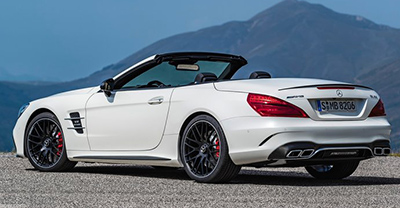 An all new Mercedes-Benz SL Class was released for 2012. The new design features a complete new aluminium body, so it is lighter than its predecessor. Also the new generation SL Class is wider and longer. In 2017, it got a slight facelift and power upgrade. The SL 63 AMG comes with a turbocharged 5.5-litre V8 mated to a 7-speed automatic transmission. Standard features include front airbags and head-thorax sidebags, ABS brakes, automatic climate control with dust filter and air recirculation, automatic steering wheel with adjustment on entry and exit, brake assist, central locking, cruise control with variable speed limiter, stability control, xenon headlights, leather upholstery, light-alloy wheels, CD radio with 8 speakers and more. An optional performance package bumps up power by 25 hp, and removes the speed limiter.