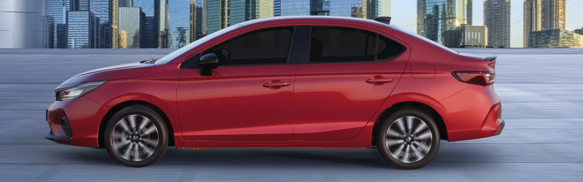 The 2026 Honda City sedan maintains the same body shape as the previous year. On the outside, it boasts a sleek, aerodynamic design with sharp lines, a bold front grille, and LED headlamps. The rear bumper has been redesigned with an added low split diffuser to incorporate the rear reflectors. The elongated body and sculpted sides enhance its elegance, while the alloy wheels and chrome accents add to its refined appearance.