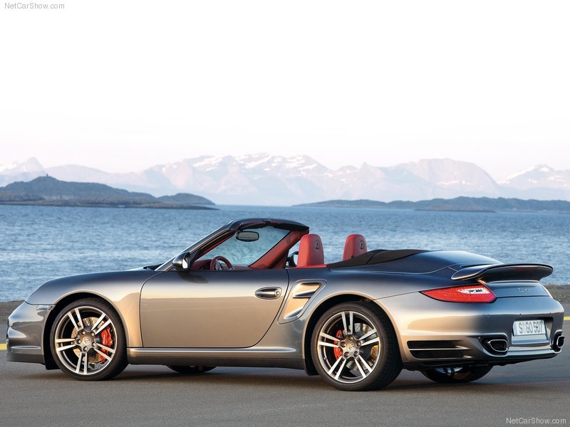 An all-new Porsche 911 Turbo Cabriolet made its debut back in 2007. In 2010 it received power upgrades and a new automatic gearbox. Under the hood, is the same 3.6-turbocharged flat-6 engine, mated to either a 6-speed manual or a 7-speed "PDK" automatic transmission. The power unit of the Porsche 911 Turbo features an exhaust gas turbocharger with variable turbine geometry (VTG), which helps increase power. It also gets an updated all-wheel drive management system. Standard features include power windows, power mirrors, central locking, electric seats, leather upholstery, automatic AC and 19-inch alloy wheels. the Porsche 911 Turbo comes standard with Porsche Communication Management (PCM), including DVD-based navigation. The standard BOSE Surround Sound System comprises 13 speakers and a seven-channel digital amplifier. As an option, PCM may be upgraded through the addition of a telephone module. The PCM also gets a 5.8-inch display. An MP3-compatible CD player is fitted just above...