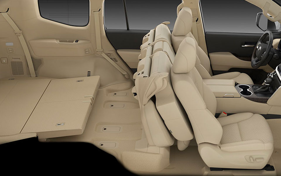 The interior has been completely revamped as well, although the design remains unremarkable. The screen can be as big as 12.3 inches in the higher trims, while a 9.0-inch screen is offered as standard. The Toyota Land Cruiser 2025 is packed with modern features like Android Auto, Apple CarPlay, wireless charging, a heads-up display, a 360-degree camera, a powered tailgate, and even a fingerprint authentication system for some reason. The third row of seats can now be folded down into the floor.
