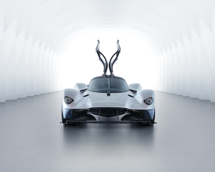 انصب الكثير من الاهتمام بتصميم الهيكل الزجاجي لإتاحة رؤية أمامية ومحيطية من الجانبين دون أية إعاقة تقريباً. ولتجنب أي اضطراب أيروديناميكي غير مرغوب به أو تشويش ضجيج أسلوبي تقليدي تم استبدال مرايا الأبواب بكاميراتين مثبتتين بشكل خفي موجهتين إلى الخلف على كلا جانبي سيارة أستون مارتن فالكيري الأسطورية، متصلتين إلى شاشتين موجودتين في قاعدة كل عمود A لمحاكاة الرؤية التي تتيحها مرايا الأبواب التقليدية. ويلغي كامل تغليف هيكل السيارة ومحرك سحب الهواء المركب على السقف النافذة الخلفية، ممّا يلغي الحاجة لمرآة الرؤية الخلفية.