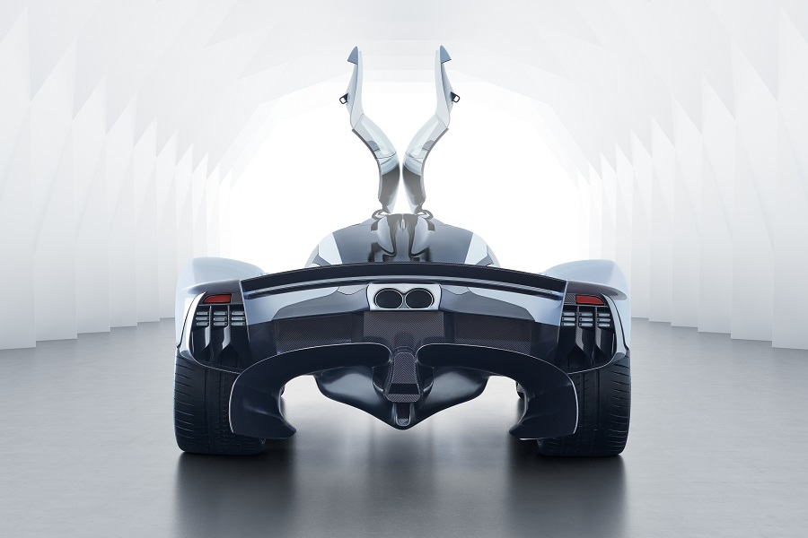 و يمكن رؤية المزيد من التفصيل المبتكر في الجزء الخلفي للسيارة، مع مصابيح التوقف (CHMSL) المركّبة عالياً في المركز. كما ركّبت على طرف زعنفة القرش الصغيرة التي تمتد على طول هيكل صندوق التهوية لسيارة أستون مارتن فالكيري الأسطورية وهيكل السيارة الخلفي، يبلغ عرض المصباح 5.5 مم وارتفاعه 9.5 مم فقط، ويستخدم تقنيبة الليد الأحمر وهي أصغر CHMSL في العالم وتشكل دليلاً على كيفية التدقيق في كل عنصر من أستون مارتن فالكيري في السعي لتخفيف الوزن والسحب غير الضروريين.