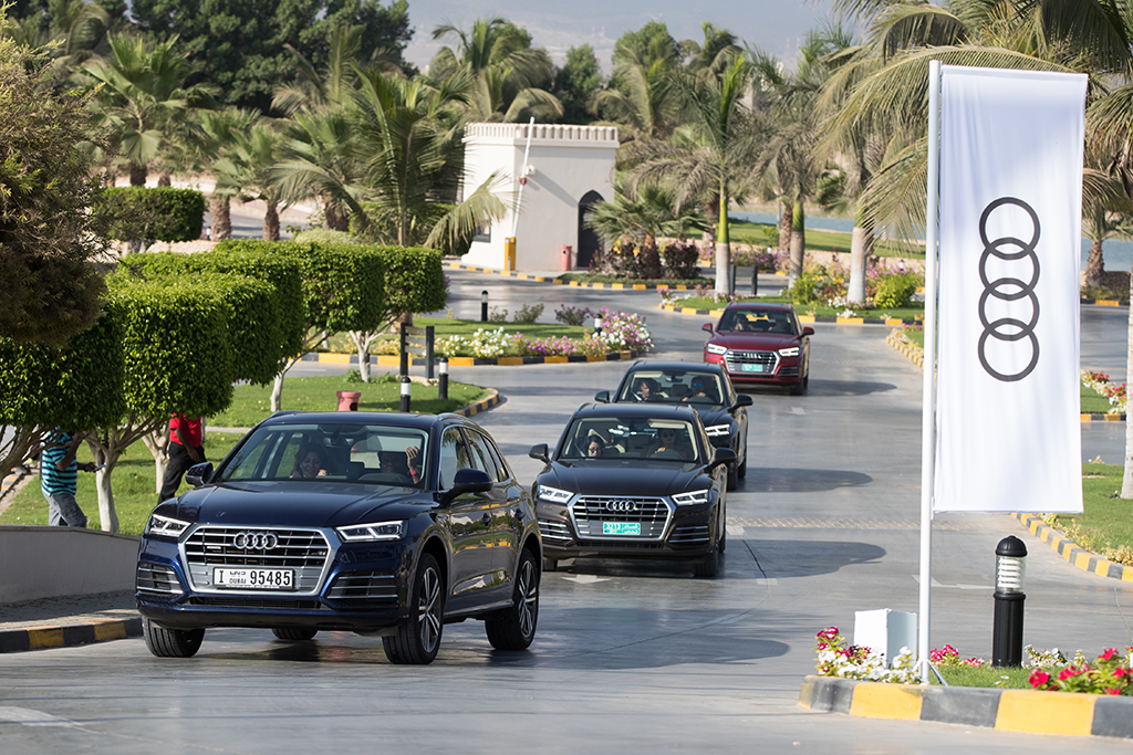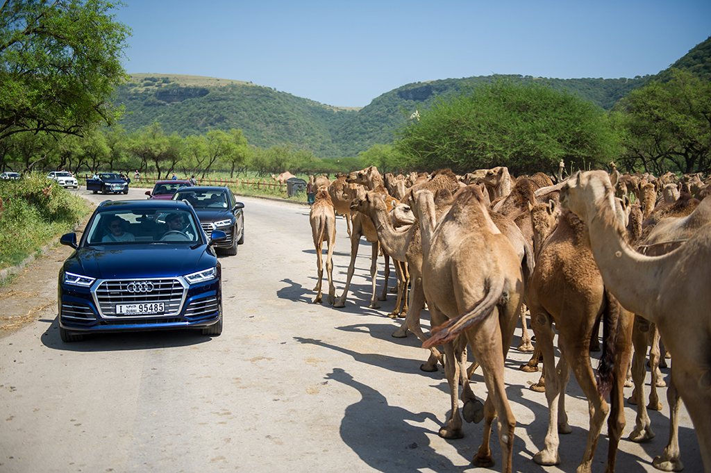 في البداية و أثناء حقل عشاء أقيم في صلالة قدنا طراز Q5 كواترو المجهز بالكامل. و هي سيارة تعج بالتقنيات و تعمل بنظام دفع كلي يمكن له فصل المحور الخلفي تماماً ( و العمل بدفع أمامي ) و ذلك تبعاً لوضع القيادة و ظروفها. و تقول آودي أن هذا النظام يعمل بشكل تنبؤي فيحتاج الى 0.5 ثانية فقط لتقييم الظروف و 0.2 ثانية فقط للاتصال بالمحور الخلفي أو فصله.