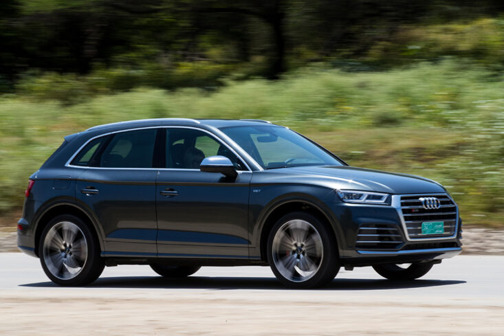 و قد قدنا أيضاً طراز آودي SQ5 المخصص لتقديم أداء أعلى. الا أن طراز كواترو هذا لا يعج بالسمات التكنولوجية بشكل كبير ولا يحتوي على تروس تفاضلية، حيث يبقى نظام الدفع الكلي مفعلاً بشكل دائم. و قد تم استبدال محرك سوبر تشارجد القديم بسعة 3 ليتر، بمحرك V6 توربو تشارجد بسعة 3 ليتر مقترن بناقل حركة ثنائي القابض من 8 سرعات. و يعمل على توليد قوة 354 حصان و 500 نيوتن متر من عزم الدوران، ما يجعلها تنطلق من 0 و حتى 100 كم/سا خلال 5.4 ثانية. و بكفاءة استهلاك وقود سجلت معدل 8.4 ليتر لكل 100 كم.
