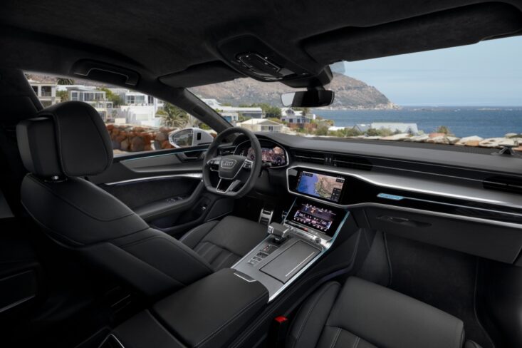 و قد جرى ترتيبها من الداخل بحيث ازدادت المساحة حول الركبة كما ازداد الحيز العلوي في الخلف، مع مساحة تخزين أمتعة كبيرة تبلغ 535 ليتر – يمكن توسيعها الى 1390 ليتر بطي المقاعد الخلفية للأسفل. و العائق الوحيد هو مجال الرؤية المحدود الناجم عن البيت الزجاجي الصغير لسيارة A7، مع شعور طفيف بالرهبة من الأماكن المقفلة في الخلف بسبب خط عاتق السيارة المرتفع.