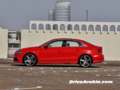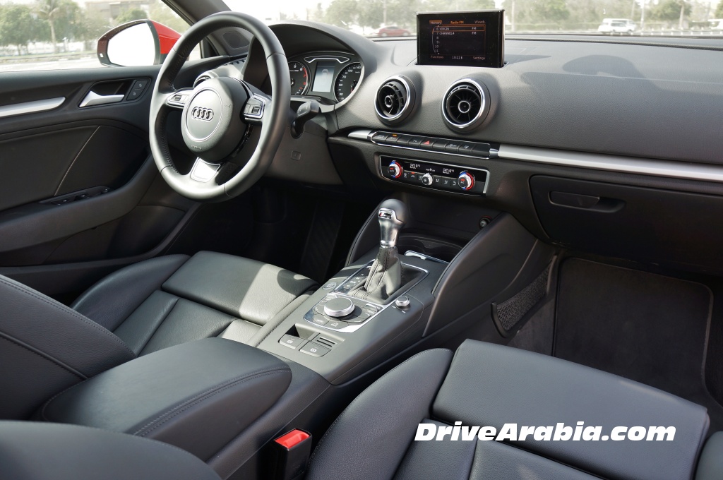في الامارات العربية المتحدة، سيارة السيدان A3 تأتي بنكهات متعددة، فتبدأ بمحرك توربو سعته 1.4 ليتر ودفع أمامي، و تصل الى الأعلى بمحرك توربو سعته 1.8 ليتر ودفع رباعي. ونحن نعتقد أن سيارتنا التجريبية تمتلك المواصفات المثالية __ محرك توربو سعته 1.8 ليتر بدفع أمامي، مع طقم S-Line والذي يعد أساسياً لجعل تلك السيارة القصيرة تبدو جيدة.