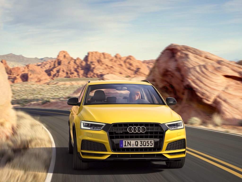 سيارة Q3 الجديدة اكتسبت مقدمة أمامية أكثر رياضية مع فتحات هواء أوسع. كما تلقت الشبكة الأمامية معالجة بطلاء حجري رمادي اللون. و تضيف حزمة S Line الخارجية مدخلات على شكل ألماس مرصع على فتحات الهواء الواسعة، و طلاء أسود مصقول و شديد اللمعان لكل من شبكة الرادياتير و فتحات الهواء. كما أن اصدار خاصاً سمي Q3 S Line كومبيتيشن بات متوفراً كجزء من التحديثات. و هذا الاصدار يضيف خطوطاً سوداء كتطعيمات للأبواب، و أغطية للمرايا الجانبية، و قضبان للسقف، و تقليم للنوافذ. كما يضيف لوناً أسود لامع و مصقول للسبويلر الملحق بالسقف و للمنطقة السفلية من المصد الخلفي. و تكتمل هذه الحزمة بطقم من العجلات السوداء المصقولة و اللامعة أيضاً بقياس 19 بوصة.