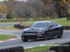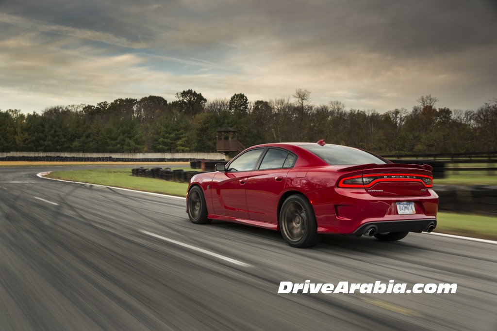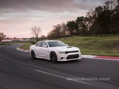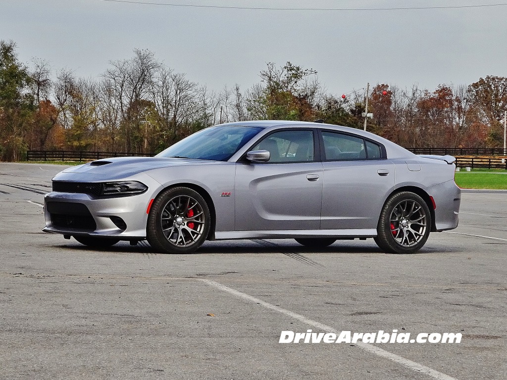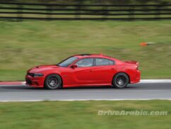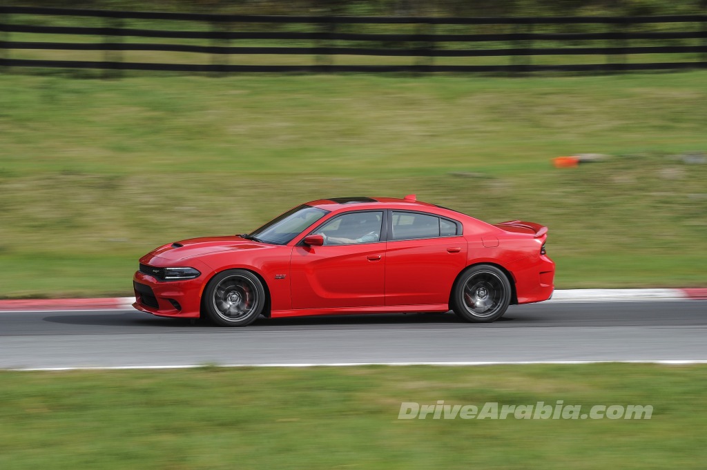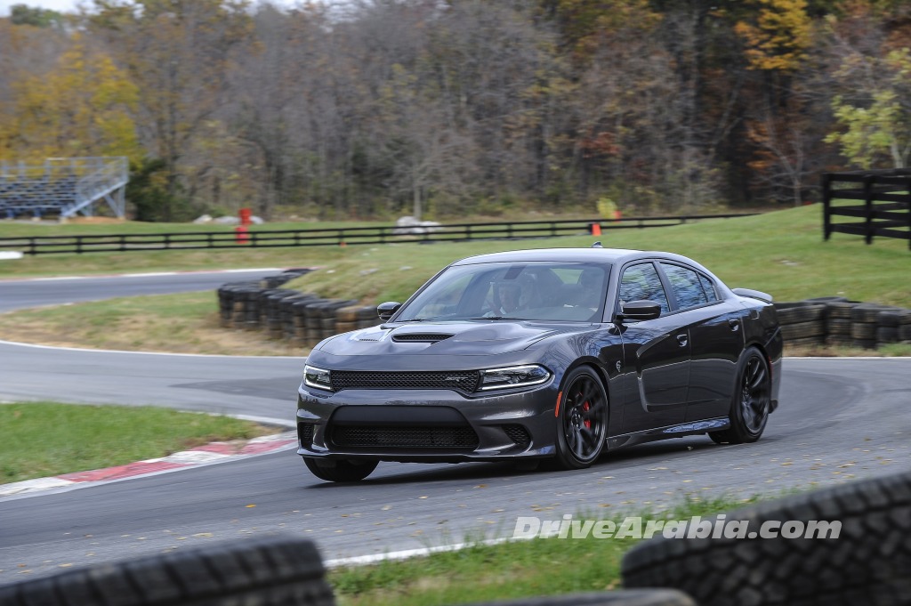 بعد قيادة طويلة بغير سيارات التشارجر إلى حلبة ساميت بوينت ريسواي، بدأنا بتجربة Charger SRT Hellcat أولاً، النسخة الأحدث في العائلة تملك محركاً بسعة 6,2 ليتر V8 يعطي قوة 707 حصان وعزم 880 نيوتن متر. انطلقنا من وقفة الصيانة بشكل هادئ، دون غزلٍ للعجلات، حتى مع تشغيل ميزة ESP في الوضع الأكثر رياضيةً. التحكم بها بسيط لدرجة تظن نفسك تقود سيارة نيسان تيدا، مما يجعلك تؤمن بأنها ليست بالسيارة التي يمكن أن تودي بك إلى حتفك بدون سبب واضح.