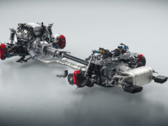 ويتم إرسال كل هذه القوة من المحرك إلى العجلات الخلفية من خلال عمود إدارة مصنوع أيضاً من الألياف الكربونية، ويكون متصلاً بمحور خلفي من 8 مستويات للسرعة، لتوزيع الوزن بنسبة 50/50 تقريباً بين العجلات الأمامية والخلفية. وبفضل عمليات محاكاة وقت الدورة واختبار الدينو لتقييم عزم الدوران وسرعة دوران المحرك في مجموعة نقل الحركة، فقد تم التوصل إلى الاختيار الأمثل لمجموعة نقل الحركة وبنية الناقل والوصول إلى أعلى مستويات الثبات على الأرض.