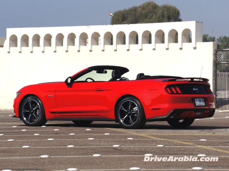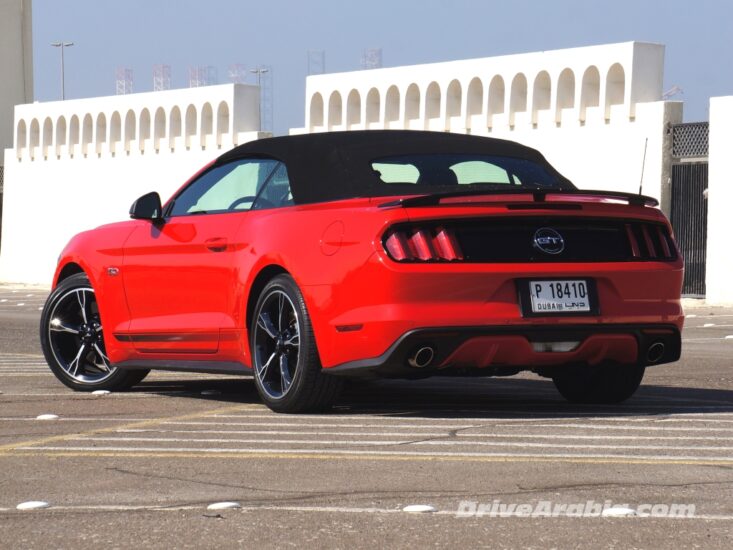 أثارت موستانج الحالية الكثير من الجدل عند ظهورها الأول في أواخر عام 2014، مع اتهام العديد من المتابعين لفورد بأنها قد جعلت من السيارة ذات المظهر القوي سيارة أكثر نعومةً و لطفاً. و على أية حال، فقد أفلح الزمن بمعالجة تلك الانتقادات و بات تصميمها الجديد محط اعجاب الجميع. كما قدمت فورد الطراز GT 5.0 الأكثر شهرة مع تقليمات خاصة منحتها لقب كاليفورنيا سبيشل. و قد قمنا بتجربة سياراتين من هذا الطراز أحدهما كوبيه و الأخرى كشف. و سنركز في مقالتنا هذه على طراز الكشف منها حيث كنا قد قدمنا مراجعة شاملة عن طراز كوبيه في السابق.