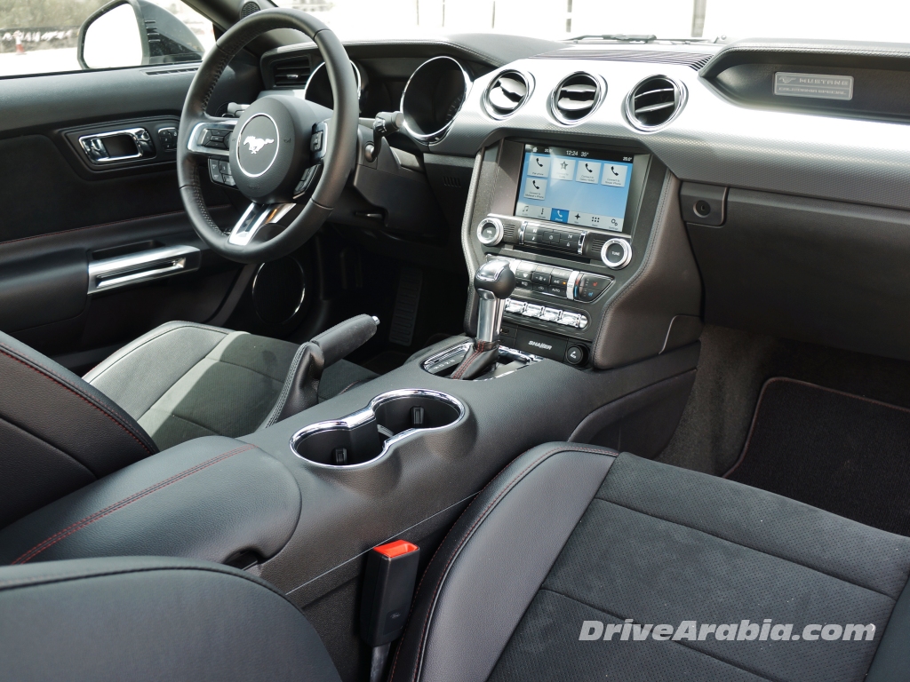 و تأتي النسخة الأحدث الآن من موستانج بنظام تعليق خلفي مستقل، ما يجعلها أكثر كياسة و كفاءة من الطرازات السابقة. و يقدم نظام التوجيه المثقل باعتدال ما يكفي من الاضافات المساعدة مع حساسية استجابة فورية، مع فعل خطي لدواسة الفرامل، و ذلك الى جانب ناقل الحركة الأوتوماتيكي ذو السرعات الست على الوضع ” الرياضي ” يجعل من قيادتها ممتعة جداً و بدون العوامل المزعجة الناجمة عن التقنيات الحديثة مثل التلكؤ المصاحب لناقل الحركة ثنائي القابض، و غير ذلك مما يؤثر فعلاً على العديد من السيارات الرياضية الأوربية. و في حين توجد نزعة غريبة لموستانج القديمة بالانزلاق المتعمد و المتحكم به عند كل منعطف، حتى عند السرعات المنخفضة، فتلك الجديدة تبدو أقل مرحاً أثناء القيادة في المدينة. كما أن هنالك مقدار كبير من القبضة و التماسك عند المنعطفات، بسلوك طبيعي و تمايل لجسم السيارة بحده الأدنى. و تؤمن فرامل بريمبو القوية ما يكفي من قدرة الايقاف أثناء القيادة السريعة في المدن. و هنالك مقدار ضئيل من الطوفان عند المرور فوق الطرقات المعيبة و ذلك على الأرجح أثر جانبي ناجم عن توفير ركوب أكثر طواعية في السيارة. على أية حال، فإن منافسيها الأمريكيين – شيفروليه كامارو و دودج تشالنجر SRT 392 – قد تفوقوا عليه من ناحية التماسك. و قد قدنا تلك السيارات الثلاث واحدة تلو الأخرى. و حيث أن فورد لا تقدم حزمة الأداء هنا، فسيبقى الأمر كذلك الى حين الكشف عن الاصدار القادم من موستانج.