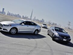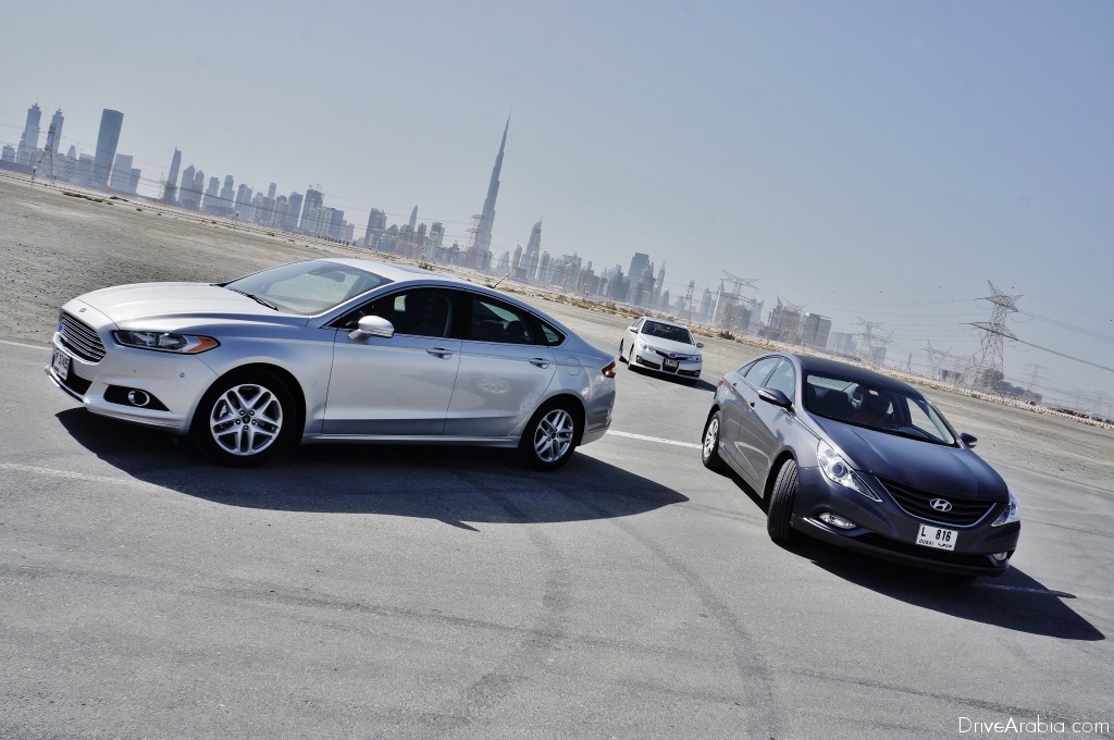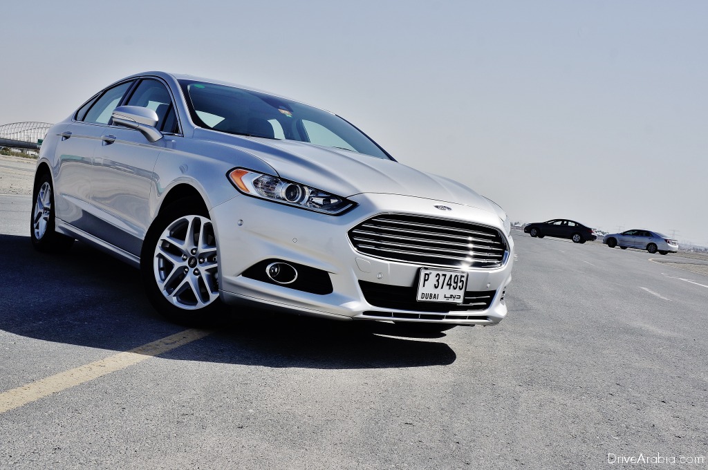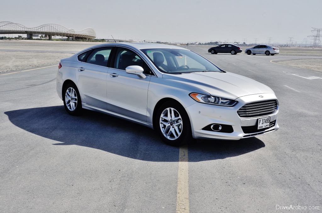 عندما قمنا بقيادة طراز فورد فيوجن 2014 العام الماضي، كان في وقتها نموذجاً أولياً يُستخدم لاختبارات الطقس الحار، وكان يحمل محركاً مختلفاً، وتمّ تجميعه بشكل تقريبي، ولكننا كنا على ثقة بتميّز هذا الطراز، مما جعلنا نضعه ضمن قائمة الطرازات التي نوصي باقتنائها حالما يصبح متاحاً في المستقبل في صالات العرض. وبالانتقال إلى الوقت الحاضر، صيف 2014، أصبح الطراز معروضاً للبيع هنا، وعندما أتيحت لنا فرصة اختبار عدد من أفضل مزايا فورد فيوجن ومقارنتها مع مواصفات الطرازات المنافسة التي تمثّل اثنتين من أكبر العلامات التجارية في المنطقة، لم نتردد أبداً في القيام بذلك، خاصة في ما يتعلّق بالتحكّم بالقيادة.