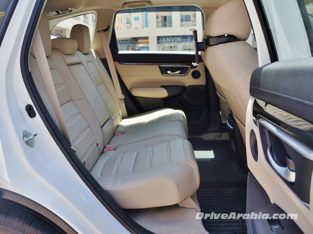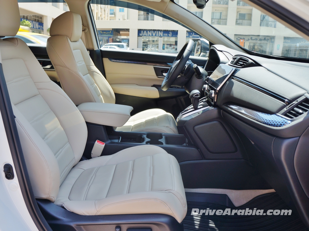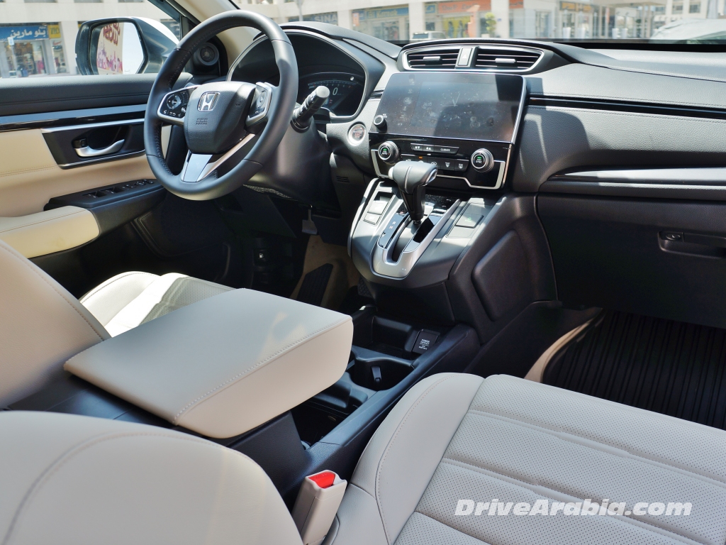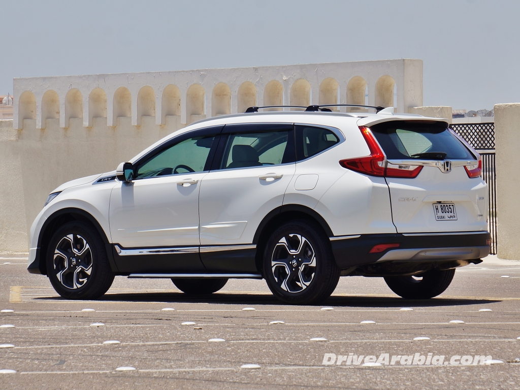 و خلافاً لما تقدمه هوندا لبقية الأسواق، لا تمتلك CR-V القادمة الى سوق دول مجلس التعاون الخليجي محرك توربو بسعة 1.5 ليتر المستمد من سيفيك RS، و بدلاً من ذلك ما تزال تحتفظ بمحرك ذو حاقن مباشر من 4 اسطوانات بسعة 2.4 ليتر، يولد قوة 184 حصان عند 6400 حصان في الدقيقة و 244 نيوتن متر من عزم الدوران عند 3900 دورة في الدقيقة، لذا فالأرقام لن تختلف كثيراً عما يقدمه محرك التوربو. و يقترن المحرك مع ناقل حركة CVT أوتوماتيكي معدل و الذي يمكن له محاكاة 7 نسب باستخدام مبدل التروس الاختياري. و يبدو أن مفعول العصابة المطاطية النمطي المصاحب لأنظمة CVT معتدل جداً عند التسارع من سرعات منخفضة، و لكن من ناحية أخرى يقدم ناقل الحركة كفاءة استجابة عالية بمجرد أن تصل السيارة الى سرعات عالية. و بالطبع فإنه من المرضي أكثر قيادتها على الوضع ” سبورت ” و الذي يضيف نقلات غيارات مصطنعة.