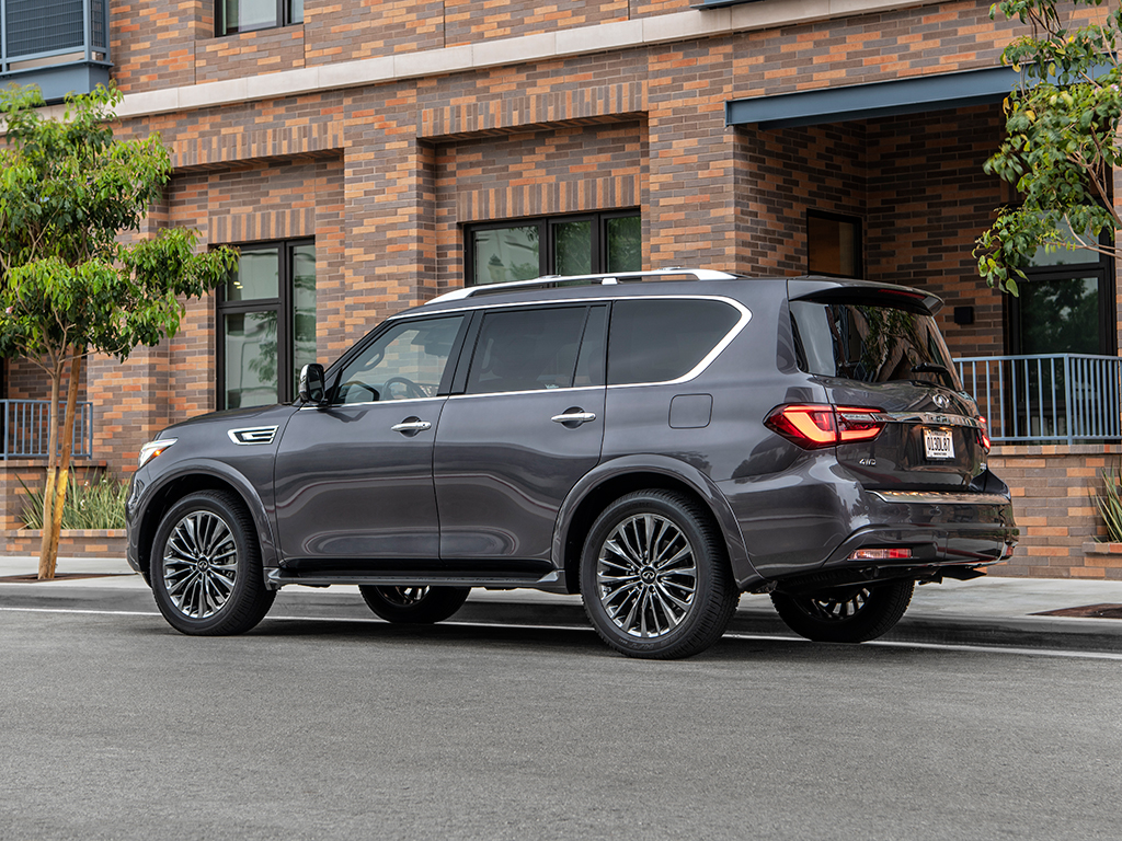 تجمع سيارة QX80 بين العناصر الجمالية والوظائف المتطورة، حيث تمتاز الواجهة بالتصميم الرياضي القوي البارز. وبالاعتماد على تاريخ إنفينيتي الياباني العريق، يمتاز الشبك المزدوج المميز في سيارة QX80 بتصميمه المستوحى من فن الأوريغامي. كما تضفي اللمسات الدقيقة المصنوعة من الكروم على الهيكل الخارجي – مثل إطارات النوافذ ومقابض الأبواب – مظهراً أنيقاً على السيارة فائقة الأداء.