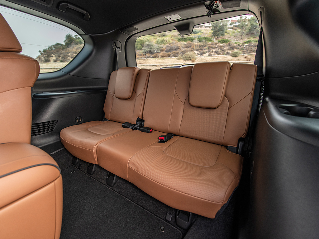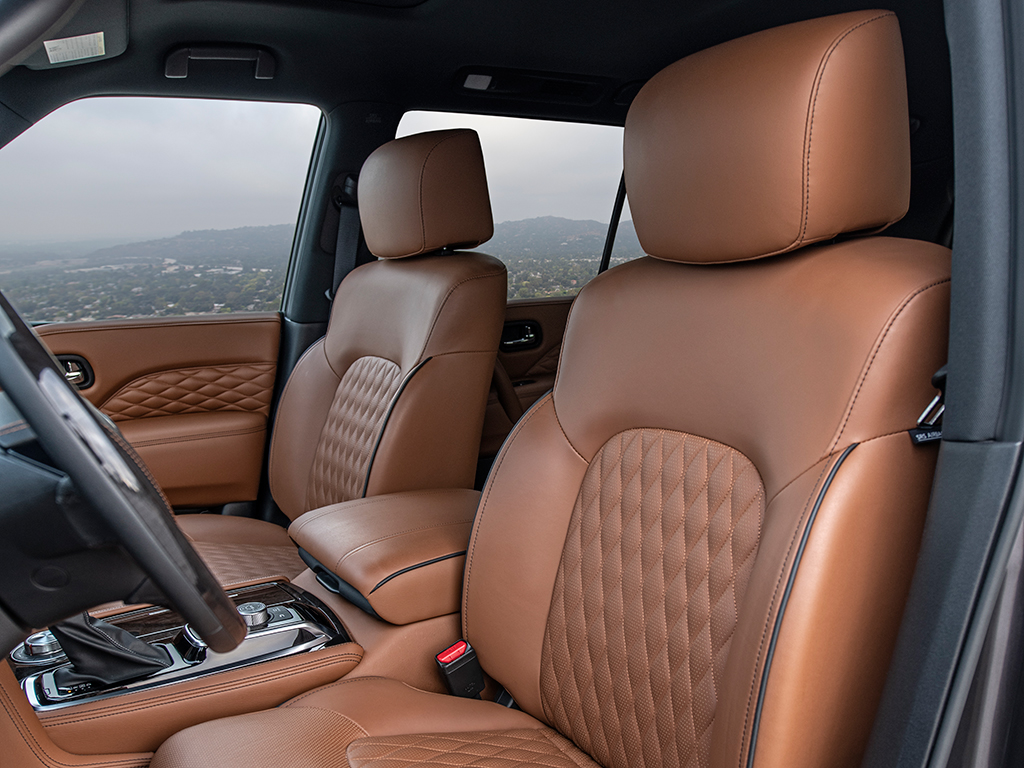 توفر مقصورة سيارة إنفينيتي QX80 مساحة كبيرة وفاخرة تمتاز بالتفاصيل فائقة الجودة. وتستقبل سيارة QX80 SENSORY الركاب بجلد نابا في صفوف المقاعد الثلاثة، فيما توفر سيارة QX80 ProACTIVE تجهيزات من الجلد المبطن المعزز بالأنيلين. كما تتوفر العديد من اللمسات التزيينية الجذابة كتجهيزات اختيارية، منها لمسات Charcoal Burl، التي تضفي مظهراً أنيقاً على المقصورة.