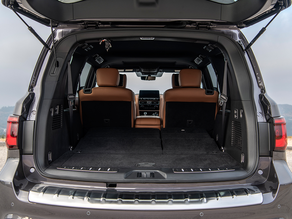 تُعتبر الرحابة التي تمتاز بها سيارة QX80 واحدة من العديد من نقاط القوة التي تميز السيارة. وتم تجهيز السيارة بثلاثة صفوف من المقاعد تشمل سبعة مقاعد كتجهيز أساسي أو ثمانية مقاعد عند إضافة مقعد للصف الثاني كتجهيز اختياري، حيث توفر أعلى مستويات الراحة لجميع أفراد العائلة. ويمكن إمالة مقاعد الكابتن في الصف الثاني بسهولة للوصول إلى الصف الثالث. كما يتيح الباب الخلفي الكهربائي الذي يأتي كتجهيز أساسي الوصول بسهولة إلى الأمتعة. وتوفر سيارة QX80 مساحة تخزين كبيرة تبلغ ١٦,٦ قدم مكعب عندما تكون صفوف المقاعد الثلاثة في الوضع العمودي، فيما يمكن زيادة مساحة التخزين إلى ٩٥,١ قدم مكعب من خلال طيّ الصفين الثاني والثالث.