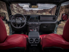 تمتاز المقصورة الأنيقة في سيارة رانجلر الجديدة بالوظائف والتقنيات المبتكرة بالإضافة إلى سمات جيب وتعدد الاستخدامات. وتمتاز لوحة التجهيزات المركزية المستوحاة من إرث جيب العريق بتصميم منحوت باللون الأبيض يتكامل مع لوحة التجهيزات الأمامية الأفقية. وتمتاز لوحة العدادات المغلفة بأسطح مبتكرة ملساء مصنوعة من القماش أو البولي يوريثين مع درزات تزيينية متباينة، فيما توجد أداة تثبيت الأجهزة أعلى لوحة التجهيزات الأمامية.