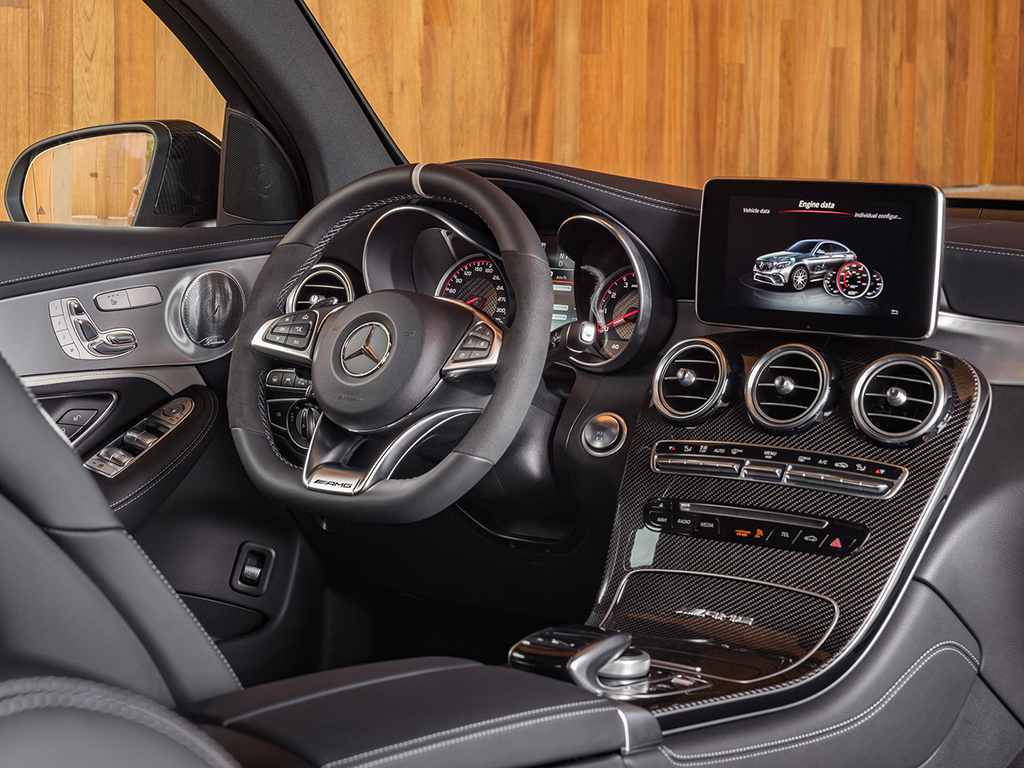 و يتوفر محرك V8 ذو التوربو المزدوج من مرسيدس AMG بسعة 4 ليتر بمستويين من الدوزان. حيث يولد في طرازي GLC 63 و GLC 63 كوبيه قوة تبلغ 469 حصان و 649 نيوتن متر من عزم الدوران في حين يزداد خرجه في طراز GLC 63 S كوبيه بمقدار 34 حصاناً أخرى. و هذا الخرج البالع 503 حصان لسيارة GLC 63 S كوبيه مصحوب بمقدار ضخم من عزم الدوران يبلغ 700 نيوتن متر. و بفضل هذه القوة، تتمكن GLC 63 القياسية من التسارع من 0 الى 100 كم/سا خلال ما يزيد قليلاً عن 4 ثوان في حين يلزم لطراز S أقل من 4 ثوان بقليل لينجز ذلك.