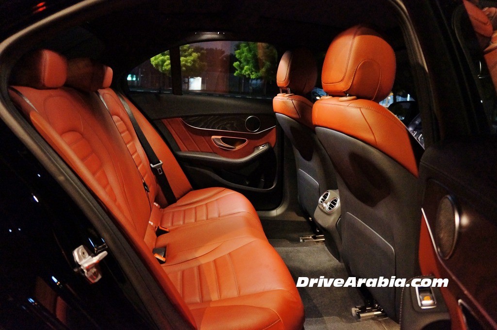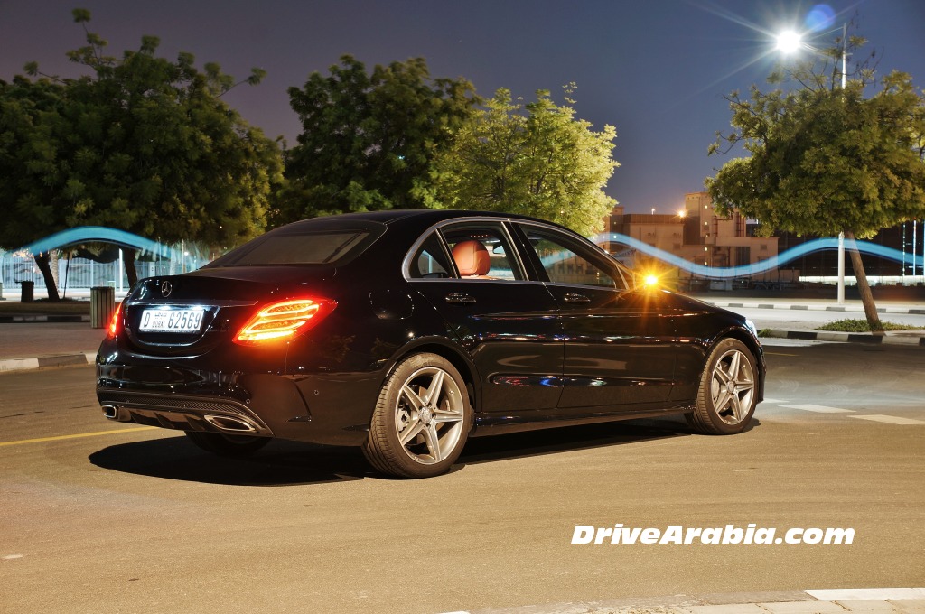 نسخة C 250 التي قمنا باختبارها مساءً هي النسخة الأعلى من حيث المواصفات في العائلة، إذ إنها مزودة بمجموعة AMG، والتي بالكاد يمكن ملاحظتها بالشكل الخارجي باللون الأسود للسيارة، ولا يمكنك الحصول على مواصفات بقوة الـ C63 في المنطقة إلا إذا كنت قد طلبتها بشكل خاص من المصنع . لكن في معظم الأحوال، فإن محرك سيارة C250 ذو السعة 2,0 ليتر كافٍ بالقوة التي يقدمها.