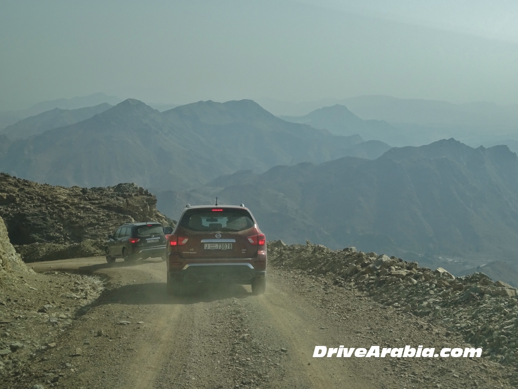 لن نقول ان اصدار الدفع الرباعي منها هو اصدار مخصص للطرقات الوعرة بشكل جدي، و لكنه يمتلك سمات Auto 4WD، و نظام التحكم بصعود و هبوط الهضاب و قفل 4×4، و لكن لا وجود لتروس منخفضة المدى. و في خطوة مثيرة، اختارت لنا نيسان مساراً يشمل على تسلق طريق جبلية شاهقة، أو بالأحرى درب من الحصى يميل بزاوية 25 درجة تقريباً عن الأفق. و تجويفات و جروف صخرية، مع الكثير من المنعطفات الضيقة أيضاً. و يتطلب ذلك الابقاء على قوة السيارة طوال الوقت للحفاظ على عزم الاندفاع اللازم. و قد كان قلقنا الأكبر هو الانزلاق من الجوانب على الرغم من وجود صخور استعملت كحواجر جانبية.