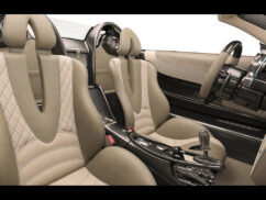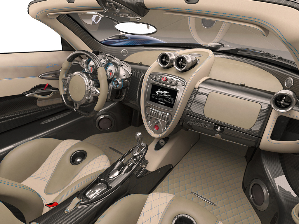 في الداخل، ألياف الكربون في كل مكان تقريباً. و يكسوكامل المقصورة جلد بلون البيج مع تطريز بلون أزرق. و تقدم سيارة رودستر خيارين للسقف، اما سقف من ألياف الكربون أو آخر قماشي.