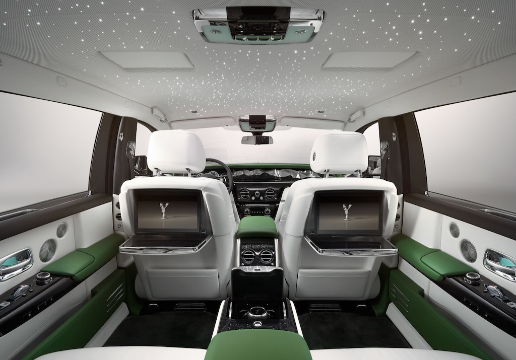 أما أكبر الأسطح في فانتوم فهي بطانة السقف المرصّعة بالنجوم. صُمِّم هذا التصميم الفريد خصيصاً لرولز-رويس بلاتينو، ووُضِعت النجوم لجذب الأنظار إلى الخلف مع شُهب رائعة تتبع انحناءة قوس النمط.