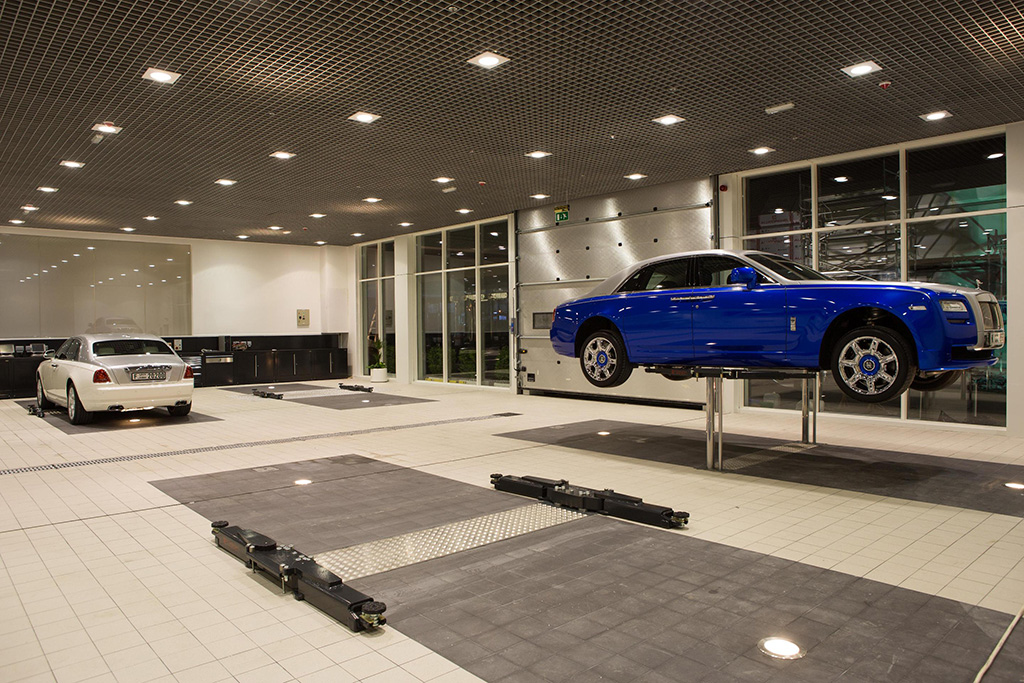 وفي الطابق الذي يضمّ المشغَل، تلقى كل سيّارة العناية بالأدوات الأكثر تطوّراً والمعدات التشخيصية التي تضم رابط دعم مباشراً إلى دار رولز-رويس في جودوود. ويسمح المشغل الجديد لأصحاب السيّارات بمشاهدة الخدمة التي تلقاها سيّارتهم عبر الجدران الزجاجية، بينما يستريحون في المنطقة الفاخرة والمجهّزة المحيطة بالمشغل. ومع الانتباه الشديد إلى التفاصيل الذي تشتهر به رولز-رويس، تضمّ هذه المنطقة رافعات ومعدّات مخبّأة، مما يضفي عليها جوّاً نظيفاً وأنيقاً.