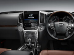 أما من الداخل فحصلت المركبة على مواد ناعمة سميكة في بعض الأماكن و ذلك لتناسب مكانها بشكل أفضل و لكي تمنح شعور بالراحة و الفخامة، و ايضا يوجد شاشة قياس 4.2 انش لأدوات التحكم المختلفة و في الموديلات الأعلى حصلت لاند كروزر الجديدة على شاشة عرض قياس 9 انش للنظام الترفيهي المعلوماتي و كذلك يتواجد مخرج طاقة 12 فولت و شاحن لاسلكي للأجهزة المحمولة المتوافقة مع تلك الميزة.