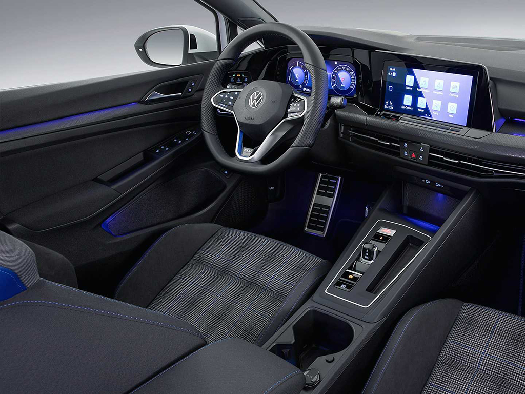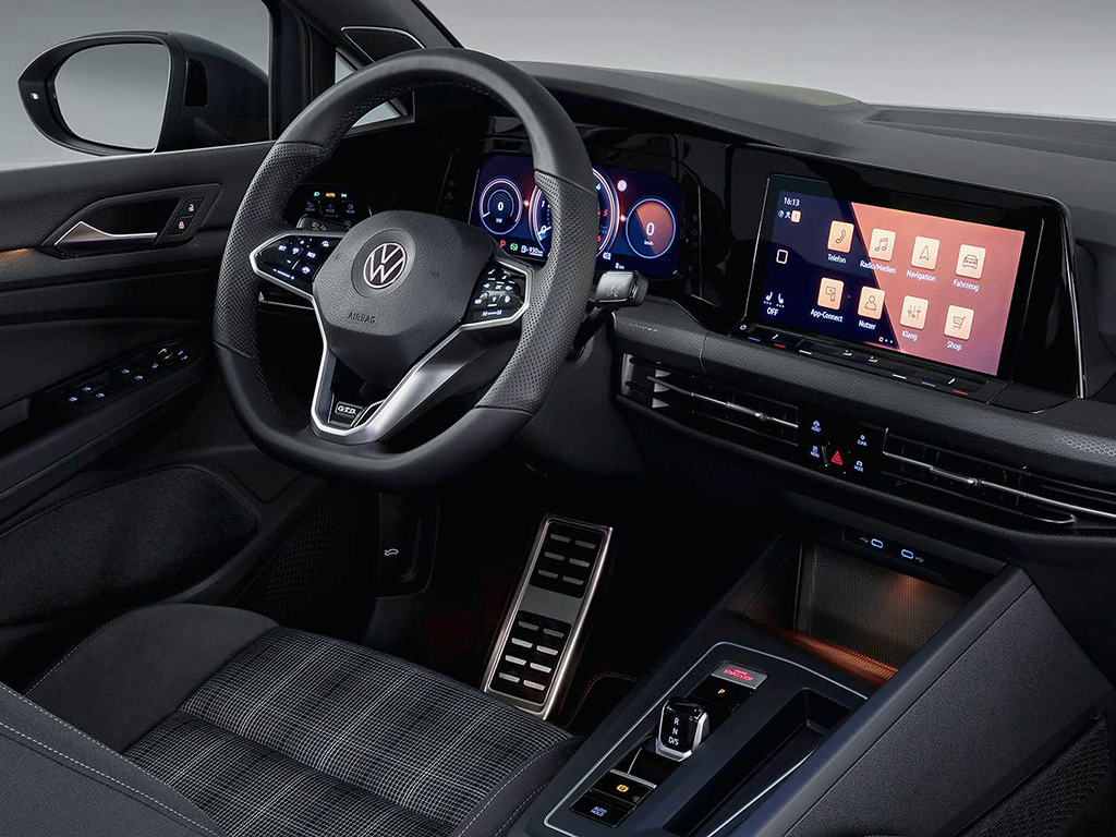 و تحمل السيارة كل السمات التكنولوجية المتوفرة في سيارة جولف القياسية بما في ذلك سمات الأمان و أنظمة مساعد القيادة. كما جرى استبدال العديد من الأزرار المادية في الداخل بشاشة لمس مركيزة كبيرة و سطوح أخرى حساسة للمس. و شاشة لمس خاصة بنظام المعلومات الترفيهي بقياس 10 بوصة، و شاشة LCD بقياس 10.25 بوصة متوفرة لتجمع العدادات.كما تم إضافة عجلة قيادة رياضية جديدة، فيما عاد مبدل التروس لشكله التقليدي السابق.