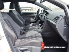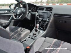 في الداخل، ما يزال تصميم المقصورة رصيناً كما هو الحال في سيارة GTI العادية، مع تغيرات اقتصرت على تنجيد المقاعد. تأتي سيارتنا بكسوة مخيطة غنية بالألوان من الكانتارا للمقاعد، رغم أن خيار الجلد متاح. عتبات الأبواب الأمامية العلوية مبطنة في حيت تأتي الأخرى الخلفية بالبلاستيك القاسي، كبقية أقسام الباب. من ناحية أخرى تكسو المواد ناعمة الملمس الداشبورد، و مساند الذراع، و عجلة القيادة المنبسطة من أسفلها و غير ذلك من الكسوة اللطيفة على كل السطوح والتي تعطي شعور المقصورة التقليدية الرائع لفولكس واجن.