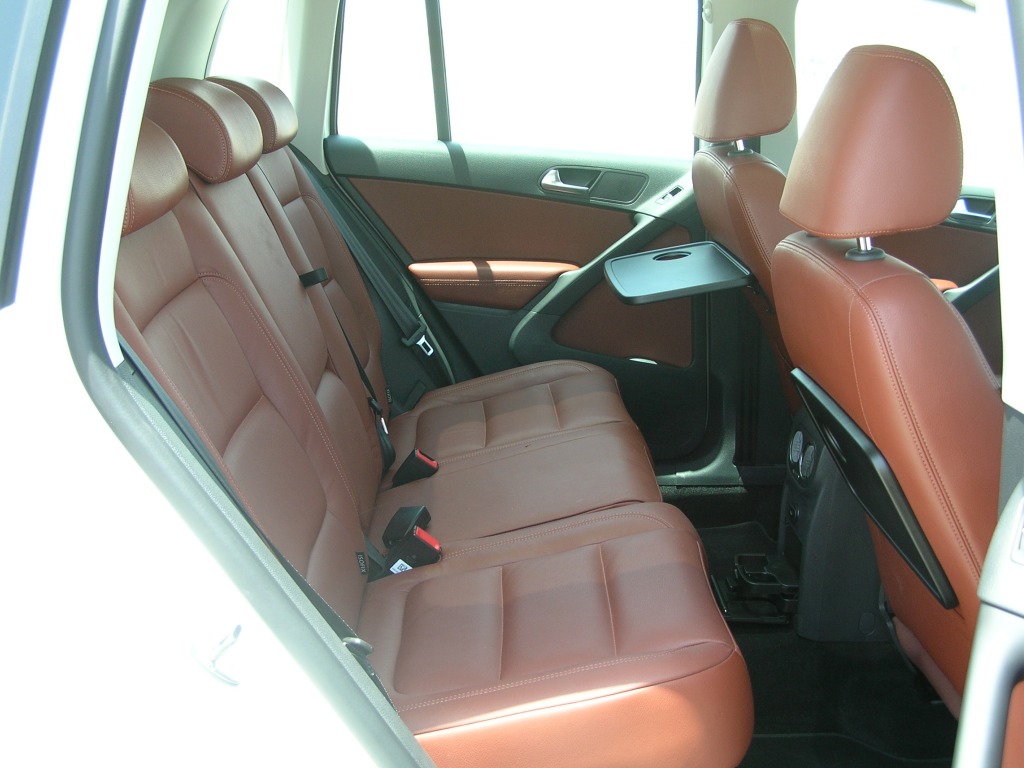 Panoramic glass roof, touchscreen navigation, Bluetooth phone, kicking CD/MP3 stereo, tons of airbags, cruise control, parking sensors, turning foglamps, electric parking brake and keyless start, all were present in our tester. A Tiguan can be ordered loaded to the brim with even more options, such as HID headlights, adaptive cruise control and a USB port. The dual-zone auto a/c worked well during our May test, and even came with rear vents. And to top it off, our tester also came with the automatic parallel-parking system that worked freakishly well.