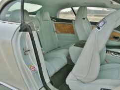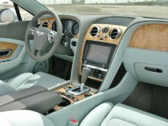 The cabin is trimmed with leather all over, even down in the footwells, with huge chunks of wood on the dash and doors, and shaggy carpets on the floor. We would’ve preferred padded door inserts and cushier armrests, but the Bentley goes for style over anything else. Even the traditional metal a/c vents are there, sweating with condensation when the roof is down.