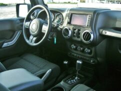 The Wrangler can be optioned up with surprisingly good tech, such as the UConnect-integrated stereo which comes with a voice-controlled Bluetooth phone that actually works as advertised, and a good CD/MP3 stereo with rollcage-mounted overhead speakers and dash tweeters. Also included are power windows, electric mirrors and keyless entry. The manual a/c was unstressed in hot May weather. Front airbags are standard, while seat-mounted side airbags are available as well. We also liked the boot floor mat, carpeted on one side, that can be flipped to use the rubberised side.