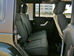 The Wrangler Unlimited still looks the same, receiving a redesign in 2007 and a new interior in 2011. There was no external hint that we were driving a Pentastar-engined model. Our “Sahara” model came with black roof panels, unpainted plastic bumpers and 17-inch alloys, although there are various trim levels and accessories available that can add a body-coloured roof, lift kit and metal bumpers, among other things.