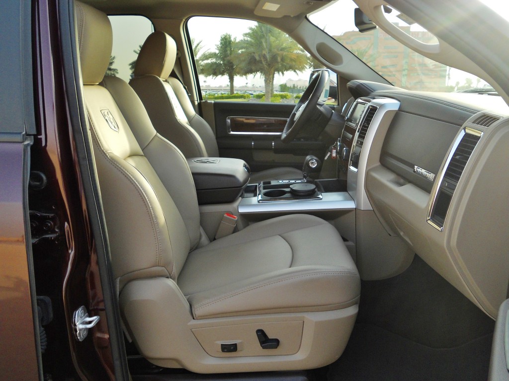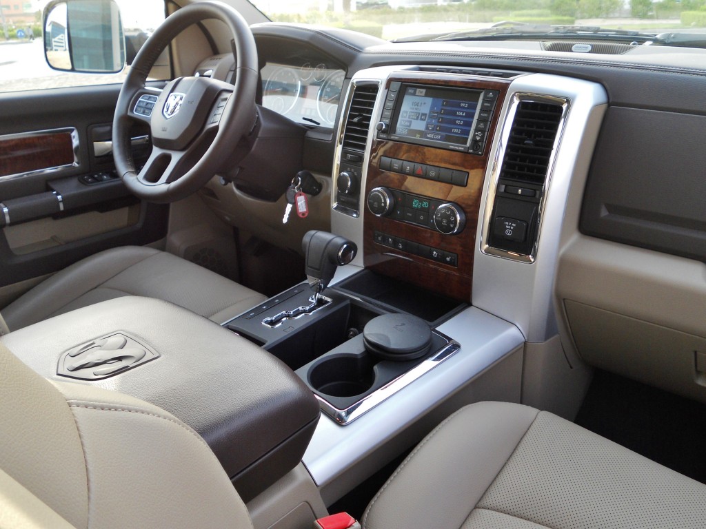 If it weren’t for the pickup bed in the back, our Ram Laramie tester would just be any other well-kitted full-size SUV, with its aggressive front end, four doors, two-tone paintjob and 20-inch chrome wheels. By all counts, it is a massive vehicle, and if you’re under 7 feet all, you’ll look like you’re trying to compensate for your size when climbing into this thing with a rope, as side-steps aren’t standard. We’ve driven one before with side-steps, but this particular car didn’t have any.
