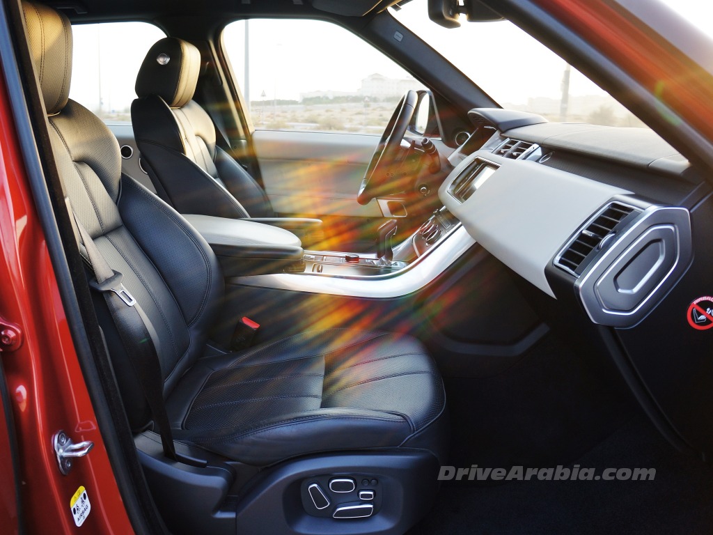 The Sport continues Range Rover’s tradition of clean cabin designs with excellent use of premium materials. The upper dash is upholstered in stitched leather to match the beefy multi-adjustable seats, buttons reduced to a minimum with the use of a touchscreen for most multimedia functions, while thankfully still retaining knobs for the a/c controls. Almost all surfaces are padded, with some metallic trim spread about, while hard plastics are relegated to a few out-of-reach areas. Again, it’s the best cabin in its class.