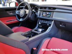 The XF is still a handsome sedan with an aggressive streak, although it’s become slightly more conservative beyond the angry front-end. The new car is clearly longer, with glass in the C-pillar to expand the rear cabin volume. It now comes in various trim levels, although visual differences are few and it may be hard to discern the hierarchy. Our red test car is the 340 hp XF 35t R-Sport, a cool-sounding name for sure, but apparently the simpler-named XF S is the 380 hp top dog.