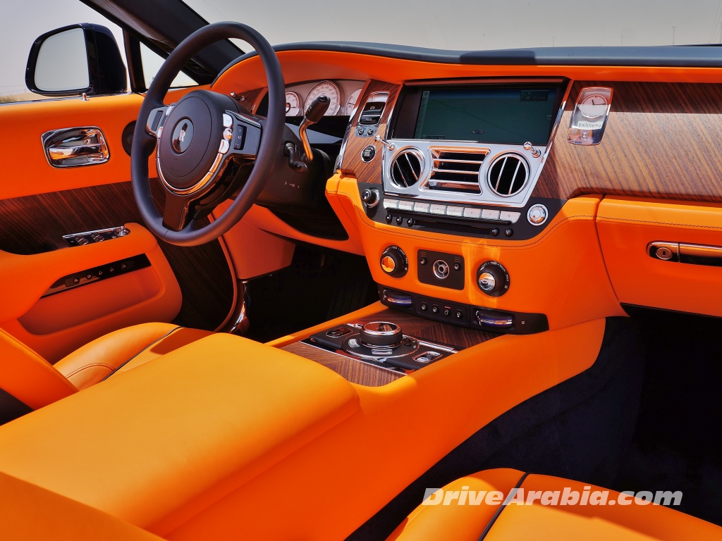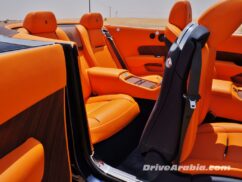 Powered by a massive 6.6-litre twin-turbo V12 engine also sourced from BMW that makes 563 hp at 5250 rpm and 780 Nm of torque from just 1500 rpm, the motor is mated to a unique satellite-aided 8-speed automatic transmission that selects the right gear by using GPS to see turns are coming up. We have no idea whether the latter was working as advertised or not, as the gear-shifts are unnoticeable and the roads in Dubai aren’t particularly twisty, but we can confirm that it worked great in the mountain roads of Austria when we drove the closely-related Wraith there a couple of years ago. There’s a thin stalk to select gears, and no sport mode.