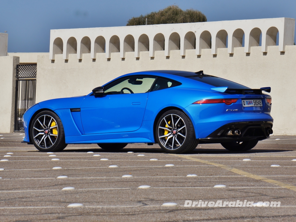 The F-Type coupe seats only two, forgoing any sort of kiddie rear seats. The SVR gets heavily-bolstered fixed-headrest sports seats that are upholstered in quilted leather, offer limited power-adjustability, and somewhat firm but surprisingly comfortable. The flat-bottomed steering wheel is thick-rimmed and power-adjustable, letting you figure out your perfect driving position. There is no useful space behind the seats. There are various small storage cubbies, two proper covered cup-holders, and a good-sized glove-box. And while the boot is shallow, even without the optional spare wheel, the coupe’s upward cargo volume under the motorised tailgate makes it much more practical than the convertible version.