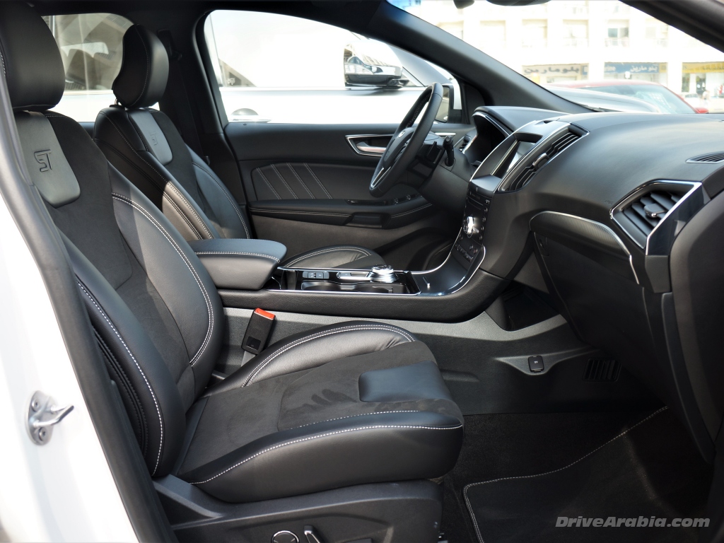 The updated Ford Edge looks much the same as the one before it, except for an entirely new front-end, new tail-light clusters and a few other styling bits. The ST can be recognised by its body-coloured lower exterior panels and massive 21-inch smoked alloy wheels, all of which make it very clear that this isn’t an ordinary crossover.