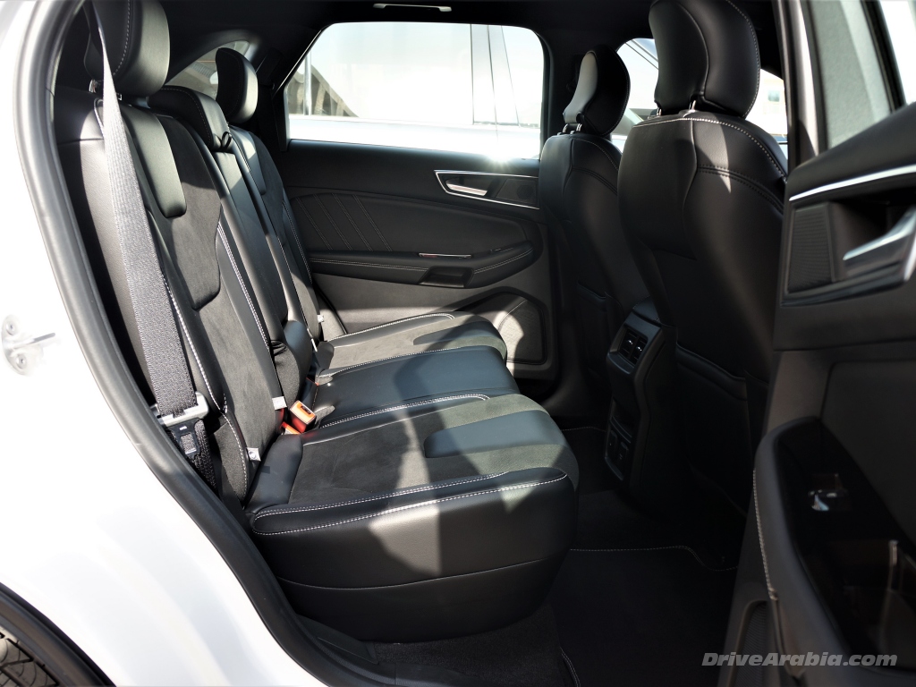 The Ford Edge packs a variety of safety features in their top-spec model, including Pre-Collision Assist with Pedestrian Detection which applies braking if a collision is imminent, Side Parking Aid for alerts to obstacles around the vehicle, Cross Traffic Alert that warns drivers when reversing out of a parking space, blind-spot monitoring and various lane-keeping assists, but the fiddly rear inflatable-airbag seat-belt option was not there on our test car.