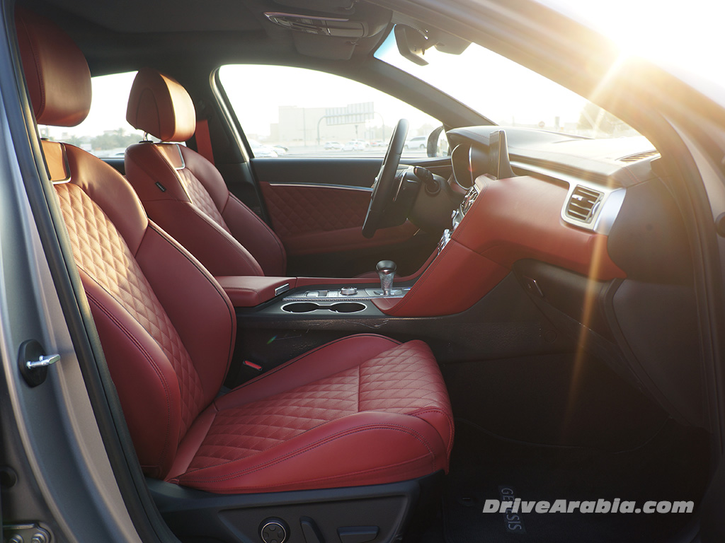 As for the ride, the 3.3T version comes with adaptive suspension, and while it’s slightly firm due to the low-profile tyres, it takes severe bumps very well, with no floatiness over uneven surfaces. It’s also fairly quiet, with a constant hush at 120 kph and minimal road noise. There is a muffled, grunty engine note played through the speakers when the throttle is applied.