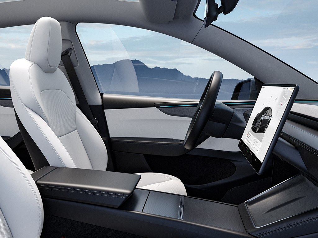 The white premium interior maintains Tesla’s minimalist theme but feels upscale and looks much better built than the previous generation. Cabin space is generous, and the panoramic glass roof, which now has better UV protection, floods the interior with natural light.