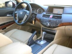 The upmarket Accord EX has all the expected features, such as leather upholstery, power windows, electric mirrors, sunroof, cruise control, average CD stereo with changer and steering-wheel buttons, keyless entry, front airbags, power-adjustable driver’s seat and automatic a/c with rear vents. New features include an optional navigation system with integrated rear camera and parking sensors, USB support, and a built-in Bluetooth phone with steering-wheel controls, all of which work fine, if a little convolutedly, using buttons and dials on the dash. But there are still no stand-out features like in many of its competitors, such as keyless start or a panoramic glass roof. Most annoying remains the lack of a trip computer to track fuel consumption. The CD/MP3 stereo is decent and the dual-zone a/c is excellent, but HID headlights, dual exhaust tips and side airbags are reserved for the V6 model only.