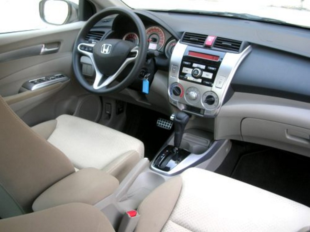 The interior is simple and yet it manages to look good. Instead of a sea of black, there is a light two-tone theme going on, with smatterings of fake chrome spicing up the console. Indeed, the gauges, stereo-face and metal pedals would’ve been right at home in a car costing twice as much, and these are the touches that help the City rise above flops like the Chevy Aveo and the Hyundai Accent. However, it becomes evident that the car is firmly stuck in the economy-car category, no-thanks to the exclusive use of hard plastics all over the cabin. There isn’t even one piece of soft-touch trim anywhere, but at least it all looks like high-quality matte-finished plastics.