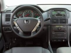 Honda equipped the MR-V with an enormous dial in the middle of the instrument panel, enabling easy viewing. The other instruments and controls will be familiar to anyone who has driven a Honda. Honda seldom varies these basics, which for decades have proven to be so successful. It consists of a minivan-like column shifter, which is spindly and moves in an ovoid path. There is a thin, sliding plastic lid over the center console which works fine, but is not very aesthetically appealing. However the fold-out cell-phone holder with a power outlet seems like a nice feature, but blocks out the two cupholders in front of it. Nevertheless, the console provides plenty of storage space in a compartment behind the cell-phone holder. A covered compartment located below the MR-V’s center stack provides more storage space between the console and the instrument panel.